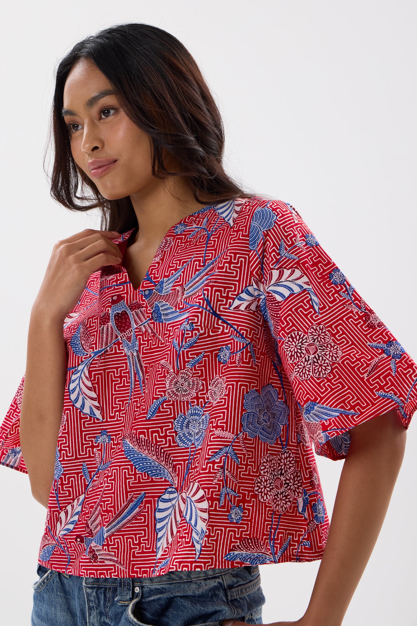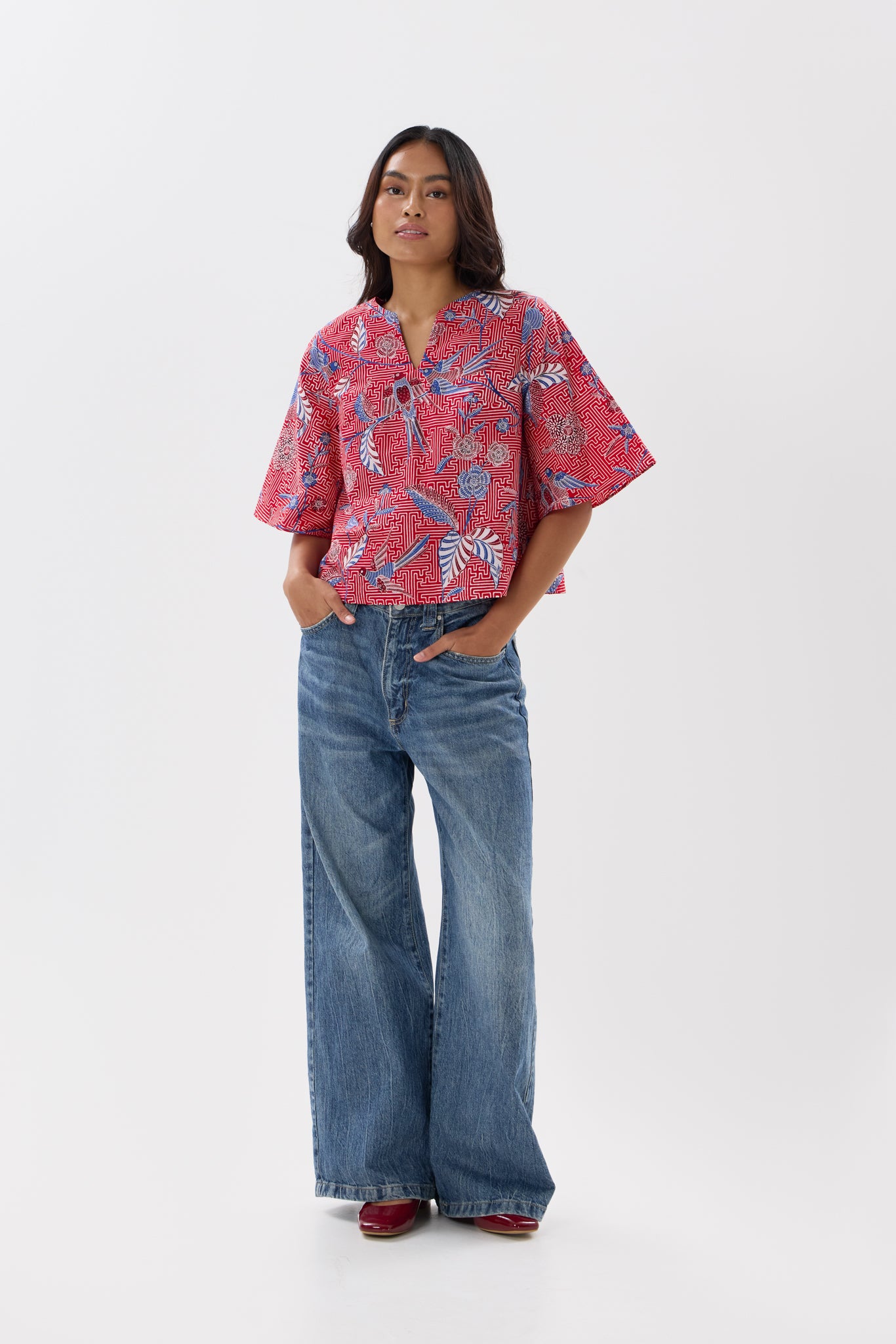 - Boxy cut