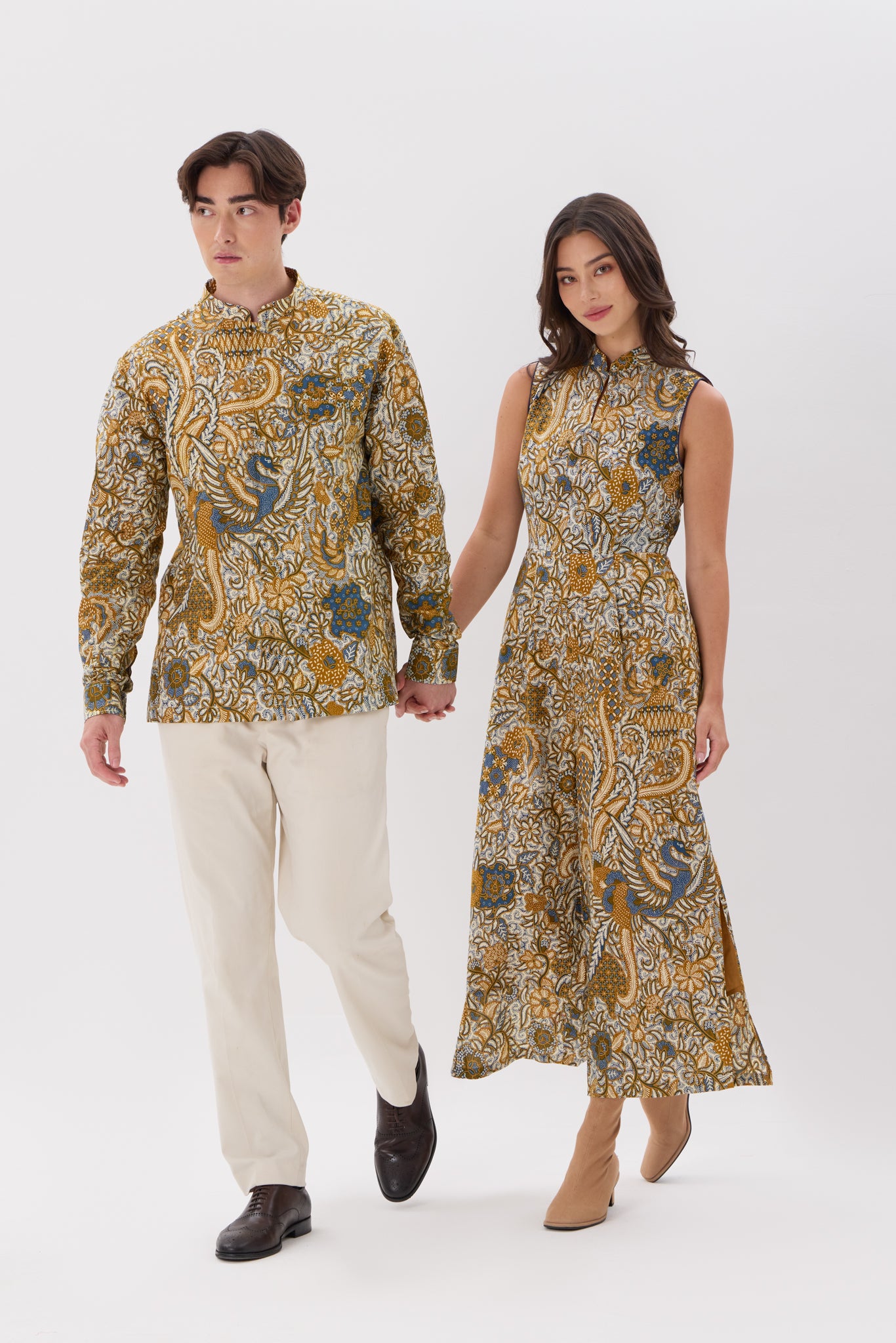 - Slit front mandarin collar with hook closure