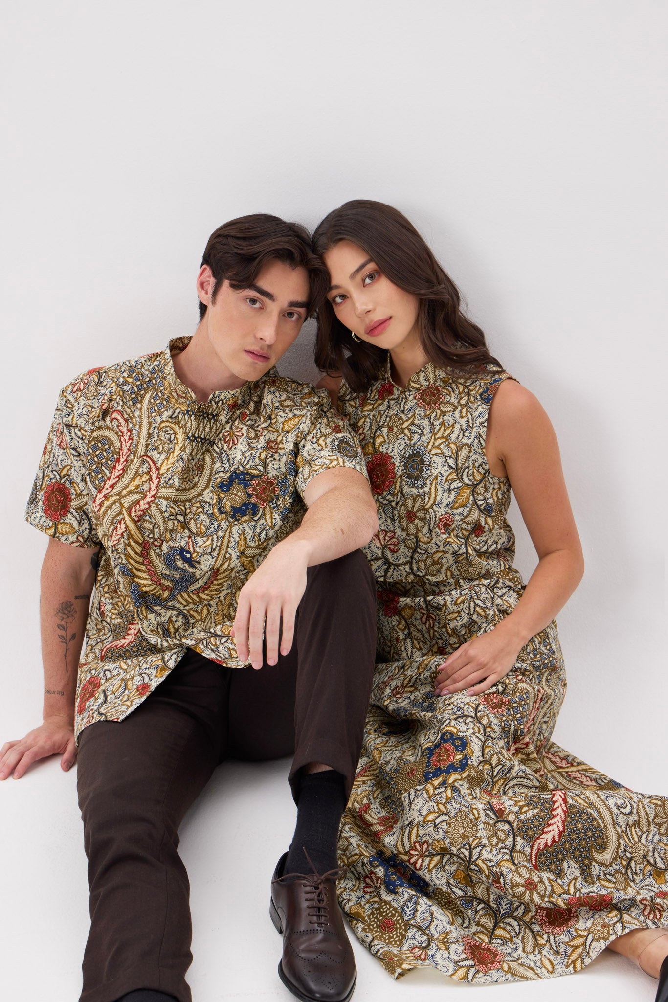 Brown and yellowish spots found on fabric are wax residue from the batik process which can be removed with washing